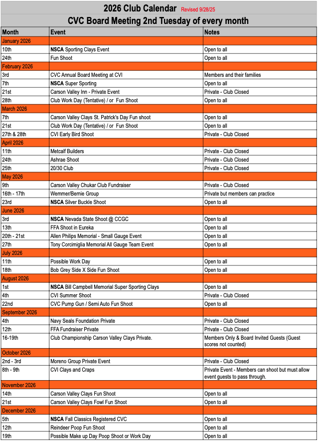 Club Closed October 2nd (except for .22 League). Club Closed for a private event on Friday Oct. 3rd and Saturday Oct. 4th. Sunday Oct. 5th is open to members but the members must allow the private group to shoot through.