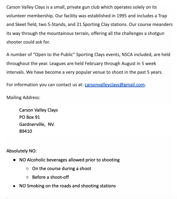 Carson Valley Clays, LLC – Required Paperwork for Release, Waiver, Indemnification, Hold Harmless, and Assumption of Risk Agreement (Page 1 of 2).